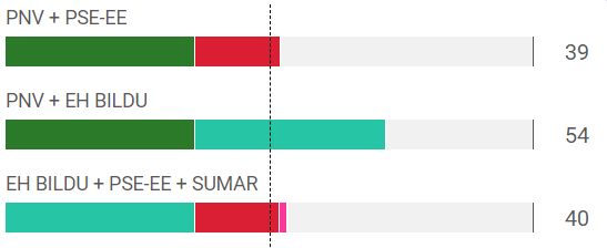 En pagt mellem Bildu og PSE-EE, begge venstrefløjspartier, virker heller ikke usandsynlig. En lignende pagt er allerede blevet indgået i Navarra, så det ville være en mulighed at overføre den til Baskerlandet. Bildus pro-uafhængigheds proklamationer og skyggen af ETA kan dog hindre denne mulige pagt mellem EH Bildu og PSE-EE. Disse to partier også have 39 pladser, 27 til EH Bildu plus 12 til PSE, hvilket betyder, at de også kunne regere uden problemer, hvis en sådan koalition skulle finde sted.
