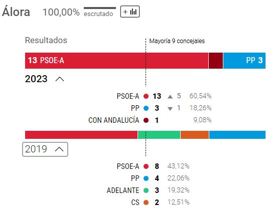I Álora (Amigos-ønske) er PSOE gået markant frem og har fået solidt absolut flertal.