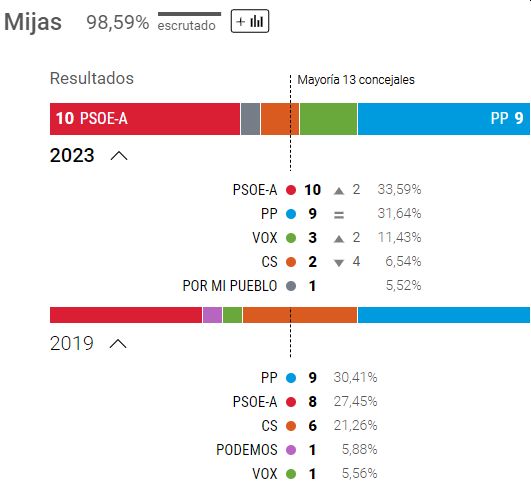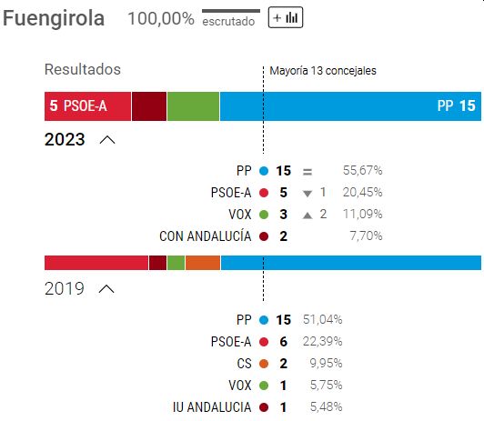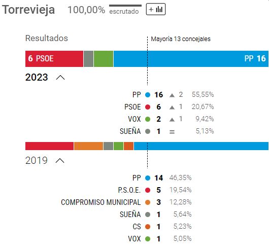 Efter at have mistet et byrådsmedlem - og givet det til PSOE - har PP fortsat absolut flertal med 13 pladser.
