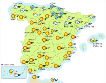 I Sydspanien er der i de seneste dage målt op til 31 grader i Córdoba, Granada, Murcia og Sevilla, mens der i Alicante, Castellón, Ciudad Real, Jaén, Toledo og Valencia har været 27 graders varme.