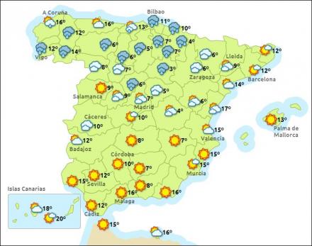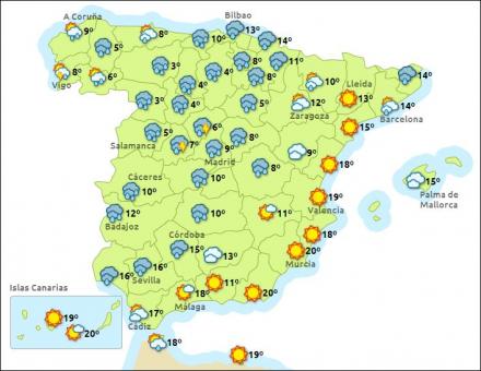 Costa Blanca får letskyet vejr og nogen sol. I dag mellem ni og 18 grader, men det bliver til gengæld blæsende med hård vind op til kuling, som dog aftager i løbet af natten. I morgen bliver det koldere, mere skyet og mellem ni og 14 grader. Mandag solrigt og op til 16 grader, men fra tirsdag bliver det mere skyet og køligere. I løbet af ugen falder temperaturen til mellem ni og 13 grader, og det bliver skyet, men skulle dog holde tørt.