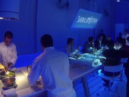 På restauranten er der et lyshow af billeder, der bevæger sig og bliver projiceret ned på bordene, som gæsterne spiser ved. Billederne er for eksempel af sommerfugle eller Versailles-inspirerede haver.