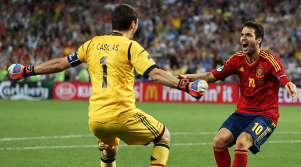 Iker Casillas og Cesc Fàbregas efter det afgørende straffespark