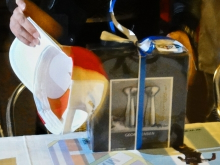 Miguel Molino, præsident for sammenslutningen, overrækker plaketten – symbolet på optagelsen – til formanden for La Peña de Dinamarca, Morten Møller.