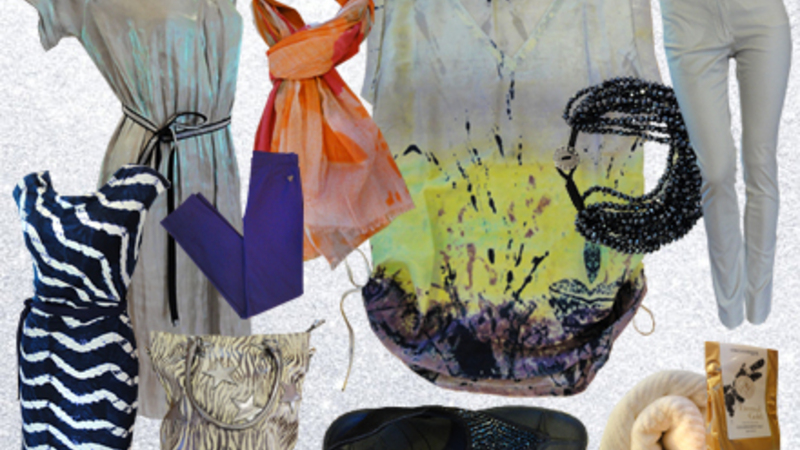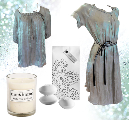 Beate Heymann kjole 299 €, bluse 209 €, Tine K duftlys 16 €, Tine K gavepose med små sæber 19 €