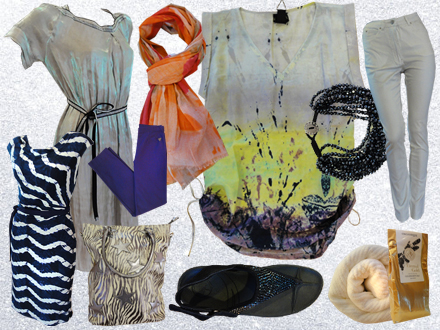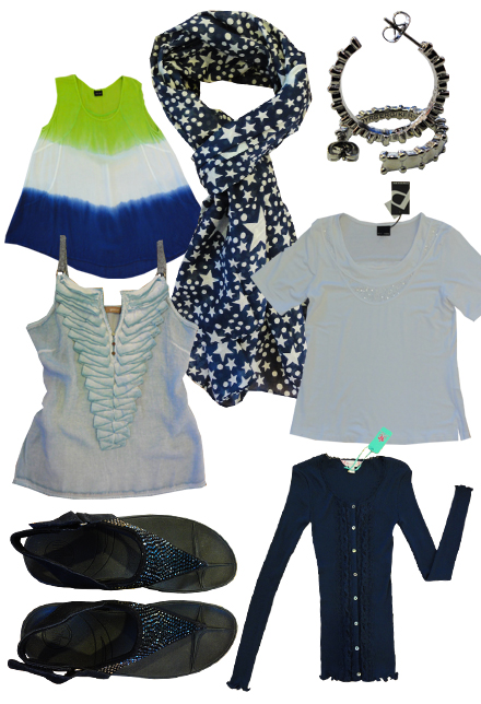 Choise top 69 €, Amust tørklæde 29 €, Dyrberg/Kern øreringe 48 €, Gustav top 89 €, Pardon t-shirt 59 €, Fit-flop sandal 89 €, Soft Rebels silkebluse 69 €
