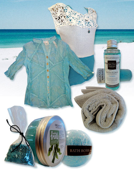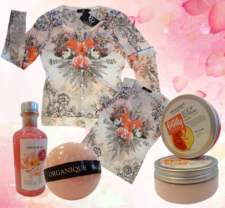 Elisa Cavaletti top 99 €, strik 149 €, skjorte 199 €, Bath Foam 10 €, natursæbe 5 €, badehåndklæde 35 €, Bath Salt 5 €, Body Peeling 36 €, Bath Bomb 6,50 €