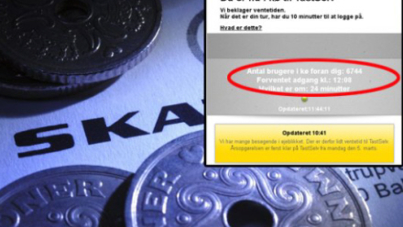 SKAT forventer stort run på hjemmesiden hele dagen. Der er derfor indført en kø-ordning, hvor du - som du kender det fra bageren og postkontoret - får tildelt et nummer og så må vente pænt i rækken, til det bliver din tur.