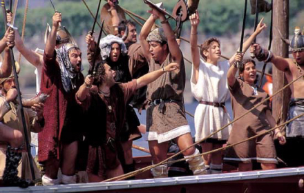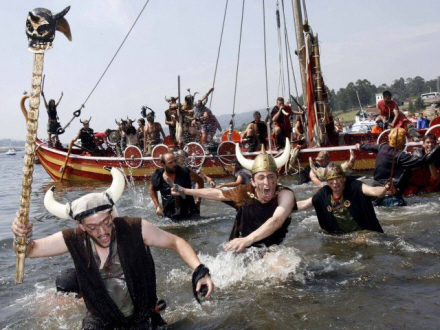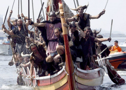 200 langhårede, kampberedte vikinger går i dag i land ved Catoira i det nordvestlige Spanien. Sværdet svinger, blodet flyder og kampen om det forjættede land er i fuld gang.