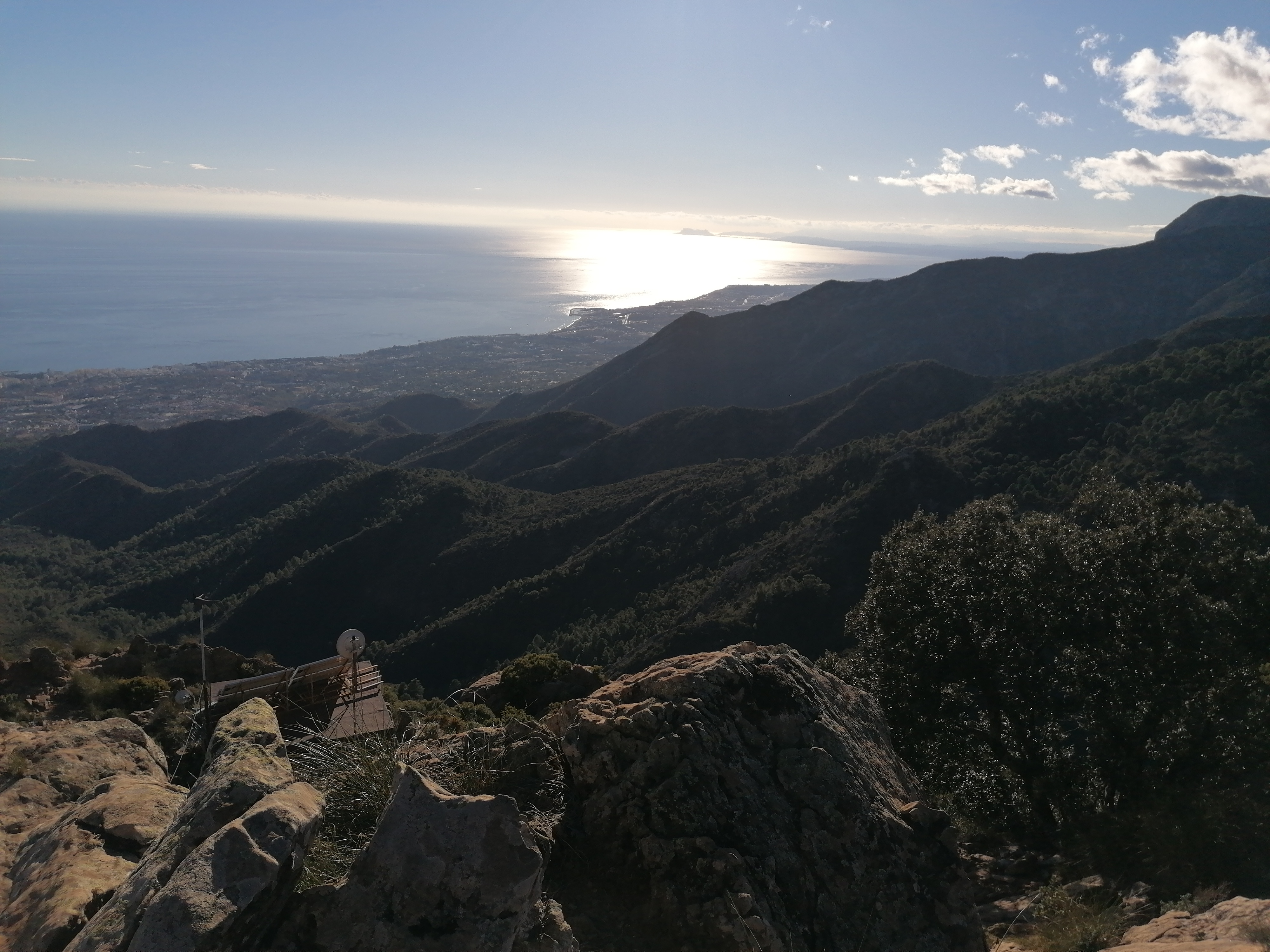 Til venstre har vi Mijas og Fuengirola, og ret nedenfor har vi Marbella. Længere ude til højre ses Gibraltar og Nordafrika.