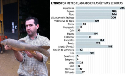 11:55 - 8.000 indbyggere i fem kommuner i Málaga-provinsen er i overhængende fare for at bliver oversvømmet. Det drejer sig om: Cártama, Álora, Sierra de Yegua, Villanueva del Trabuco og Genalguacil.