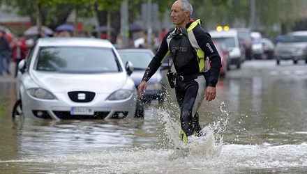 En mandlig bilist måtte evakueres i helikopter, da hans bil pludselig blev fanget i vandmasserne ved en kirkegård i Villava. Vandet steg så hurtigt, at manden måtte kravle op på bilens tag, hvorfra han blev reddet af helikopter.