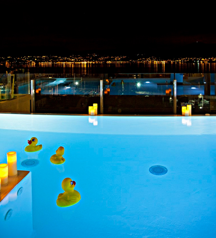 Om natten omdannes poolområdet til en moderne lounge-bar, der tilbyder et helt nyt perspektiv på byen, samtidig med at du kan nyde de bedste cocktail.