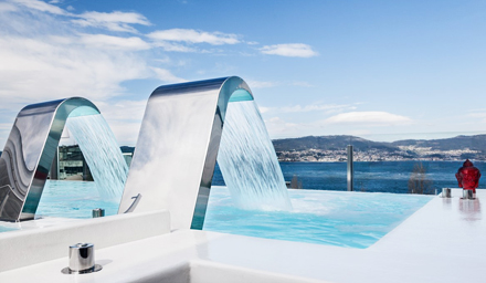 Poolen har indbyggede massage-funktioner såsom svanehalse, vulkaner der skyder op fra bunden og boble-senge, der masserer hele bagsiden af kroppen.