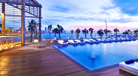 Barcelonas seneste 'must see' er W Hotels elegante WET pool terrasse og bar, som er den perfekte oplevelse for selv de mest krævende luksus-entusiaster. Den våde bar giver dig både en panoramisk udsigt over Barcelona by og den smukke strand.