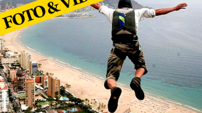 Luftens vildeste vovehalse kastede sig lørdag morgen ud fra det 200 meter høje boligkompleks "In Tempo", der ligger i den østspanske turistby Benidorm.