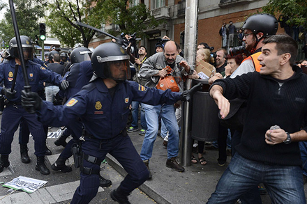 Nogle af de alvorligste gadekampe nogensinde i Madrid opstod, da flere tusinde demonstranter i aftes mødte op for at deltage i den varslede demonstration ”25S - Omring Kongressen”.
