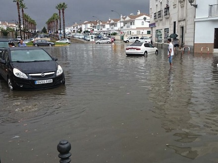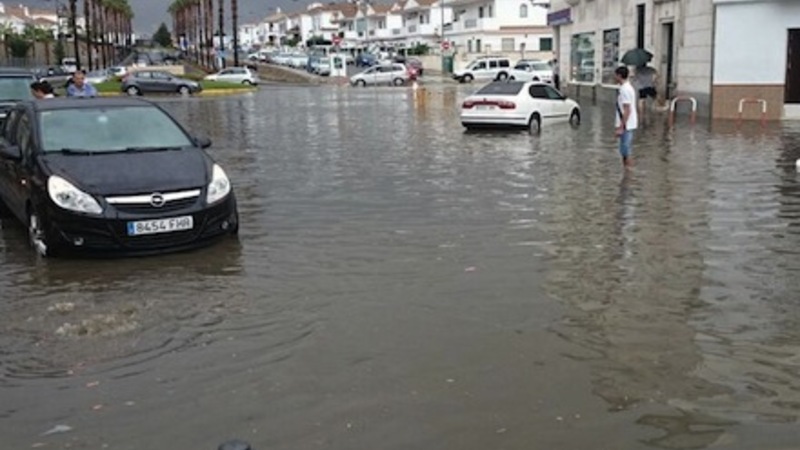 I lavtliggende egne og i marskområderne ved Cartaya (foto til denne artikel, red.), Isla Cristina og Lepe skete der flere oversvømmelser, da der lørdag eftermiddag mellem klokken 15 og 16 faldt 30 mm nedbør.