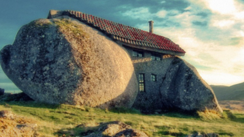 Det ligner næsten noget, der er løgn, men den er god nok, og der er faktisk mange huse i Portugal, der er bygget mellem, omkring og under kæmpe klippekonstruktioner. Byen Monsanto skulle efter sigende have mange gode eksempler på det.