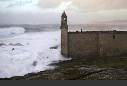 Voldsomme bølger ved Jomfru Barca-kirken i Muxia, A Coruña