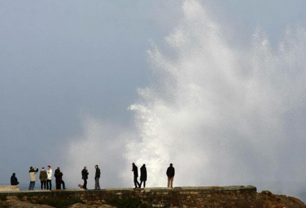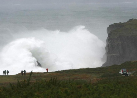 Tre personer blev meldt savnet mandag, efter et voldsomt stormvejr langs de galiciske kyster medførte kæmpe bølger, som væltede mere end tre meter ind over klipperne. Omkring et dusin vidner så, hvorledes bølgen ramte de tre personer, der stod med ryggen til det oprørte hav.