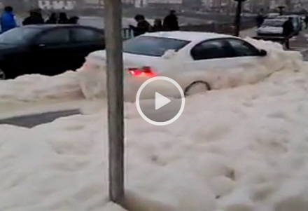 Havskum fra det frådende hav gør livet svært for bilister i Vigo