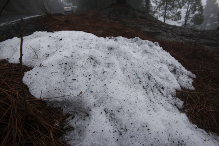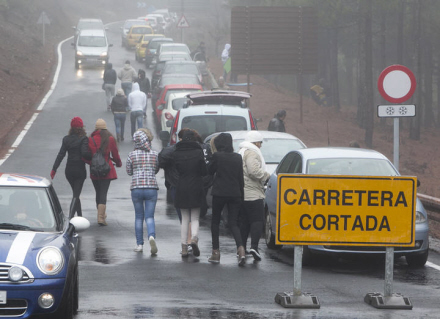 Landevej GC-134 fra San Mateo til det 1.950 meter høje bjerg Pico de Las Nieves (Snetoppen, red.) på Gran Canaria blev i går lukket fra klokken 13:30 for at forhindre det trafikkaos, der altid opstår, når folk styrter op for at se sneen.