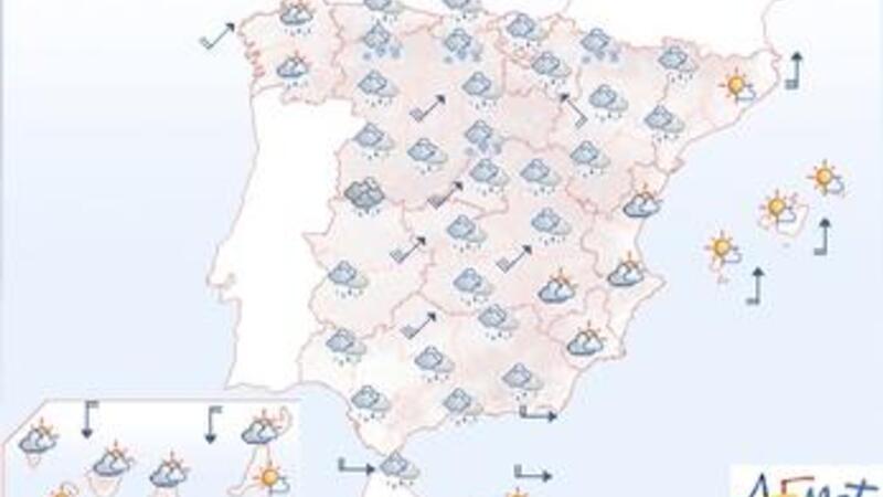 På de Canariske Øer leyet vejr og mulighed for nedbør i form af sne i højder over 1.400 meter.