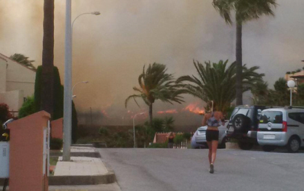 Kraftig vind fik hurtigt ilden til at brede sig ned mod Campingpladsen, landevejen og Club La Costa, og flere beboere blev evakueret.