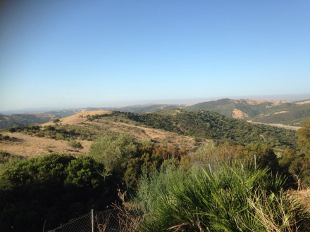 "Dette er udsigten fra vores terrasse her til morgen. Røg-bæltet går fra Gibraltar og hele vejen op til Guardiaro-dalen. Vi har udsigt over Genal. Ingen røglugt, men vi kan høre masser af aktivitet i luften (helikoptere, brandslukningsfly, red.). Vi håber, at alle er i sikkerhed, og at ingen huse er brændt."