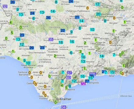 I Málaga faldt der 32,7 mm. regn, i Mijas 47,7, i Pujerra i Ronda dalen 41,6 og i Ardales nord for Málaga 40 mm. Marbella fik hele 72 mm., mens der i Fuengirola faldt 26,3 mm.