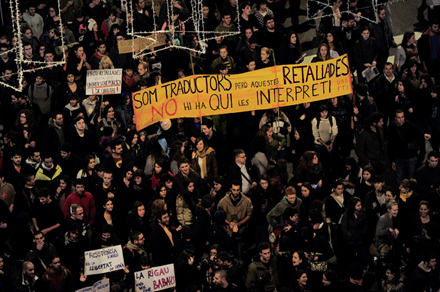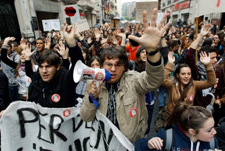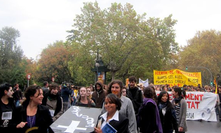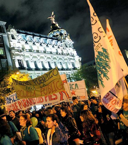 Flere tusinde unge bakkede i går op om en række aktioner foran universiteterne i Madrid og Barcelona, hvor de protesterede mod regeringens planlagte nedskæringer i budgetterne for undervisningssektoren til næste år.