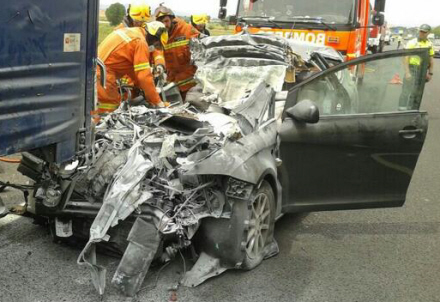 53-årig bilist havde ikke en jordisk chance for at slippe levende fra en voldsom kollision med lastbil, der holdt parkeret i kørebanen.