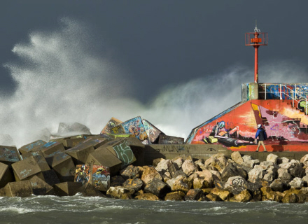 Hele den nordspanske kyst var i går i højeste beredskab på grund af blæst og høj sø. Mange steder er der sket skader på bygninger, moler og strandpromenader. Beredskabsniveauet er i dag nedgraderet til orange, så der er fortsat fare forbundet med at snige sig for tæt på kyster og havneområder.
