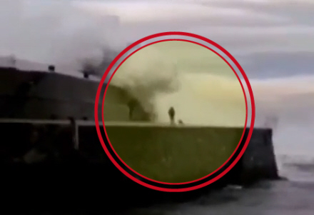 Den 43-årige mand kom spadserende på molen ved havnen i Ondarroa i Vizcaya i går formiddag kort før klokken 11, da han blev overrasket af nogle gigantiske bølger, der slog ind over molen.