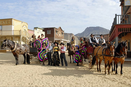 Både Temaparken Oasys og westernkulisserne Fort Bravo lokker med drabelige forestillinger af statister og professionelle stuntmen.